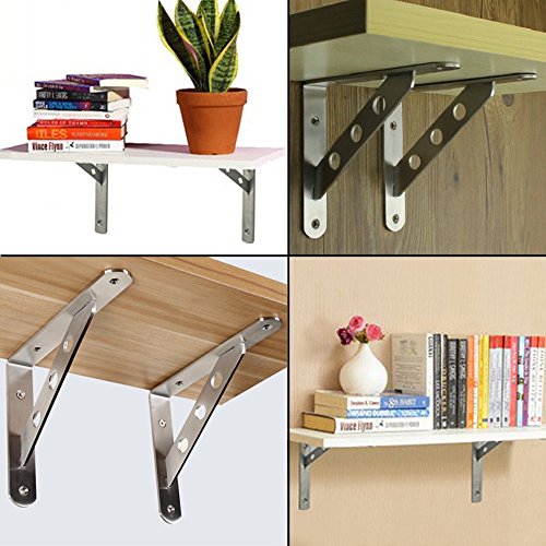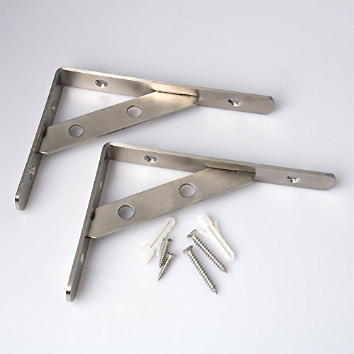 Alise Stainless Steel Heavy Duty "L" Decorative Shelf Bracket Corner Brace Support Fastener Wall Hanging 150X110MM,1 Pair Brushed Finish,J5201-2P [並行輸入品]