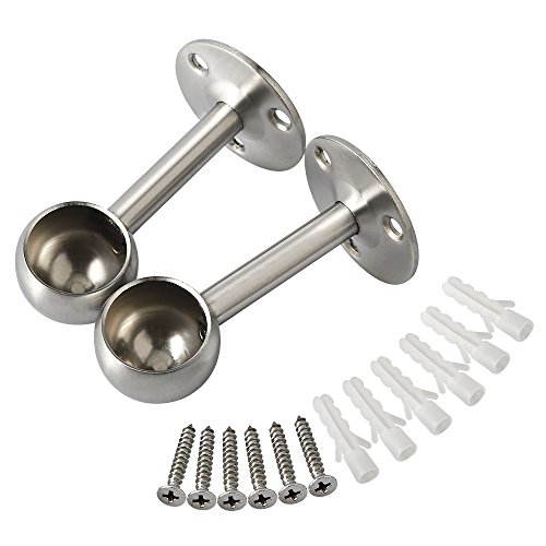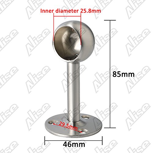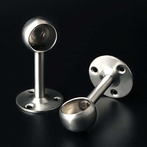 Aliseソリッドステンレススチールクローゼットカーテン服パイプロッドレバーサポートブラケット25?mm / 1インチ径、つや消し仕上げ FL4001-2P