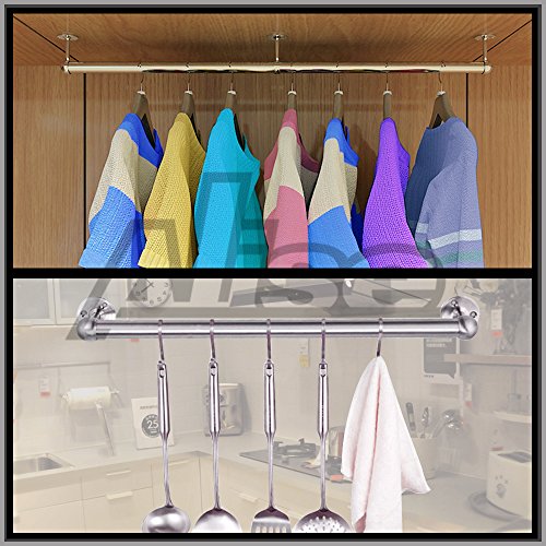 Aliseソリッドステンレススチールクローゼットカーテン服パイプロッドレバーサポートブラケット25 mm / 1インチ径、つや消し仕上げ FL4001-2P