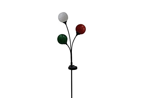 Solar Red, White and Green Ball Garden Stake. Made of Metal and Plastic. 3-In-1 Stake Design. Solar Powered.