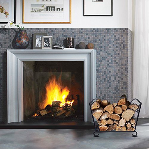 暖炉ログホルダーラックFireset Birchログキャリアとホルダーツールピューター薪素朴なFire WoodキャディインドアメタルKindlingバケット錬鉄ツールセットアクセサリーbyアウトドアラウンドラック ブラック BL0010