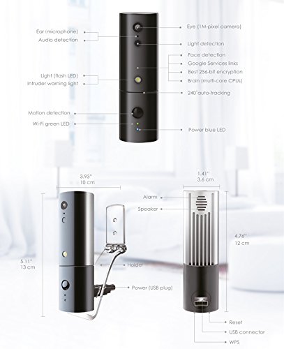 USB直挿しタイプで、モバイルバッテリーから給電出来る見守り&防犯カメラです。動きと音を検知して240°自動トラッキングします。