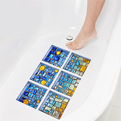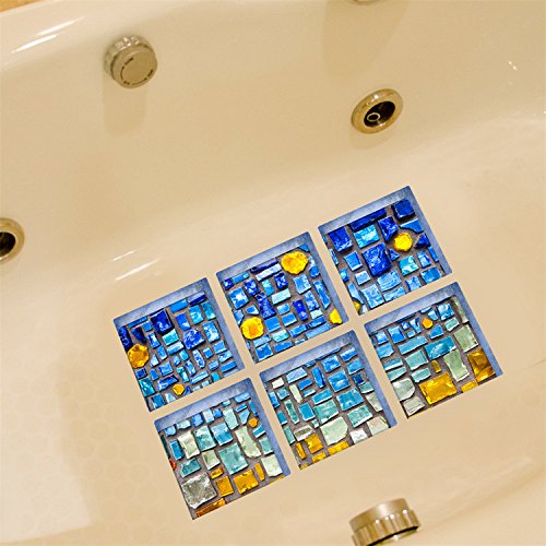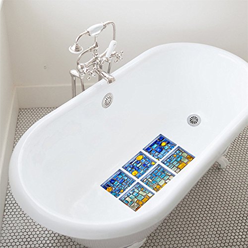 amazingwallブルーモザイク3d DIYアンチスリップ安全シャワーバスタブデカールステッカーBathtubアップリケ5.9 X 5.9 " 6個/セット