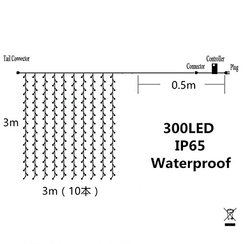 - サイズ:3MX3M LED数:300球 コード本数:10本 電圧:85V-265V 消費電力:9W