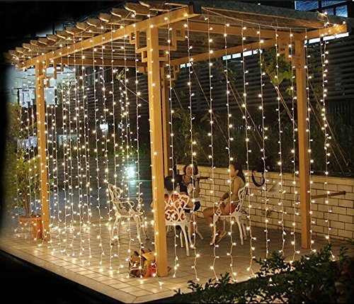 Ameelie LED イルミネーションライト 300球 led カーテンライト 正月 バレンタインデー クリスマス 結婚式 パーティー 飾りライト 防雨仕様 8パターン点灯 屋外屋内兼用 ロマンチック飾りライト3M*3M(ウォームホワイト)