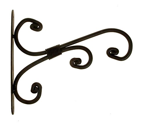 The arched scroll plant bracket is wire wrap. These black brackets have a charming design of scrolls and arches. This are powder coated finish. Weather and rust resistant. Measures 8-inch.