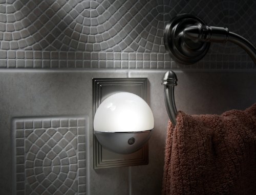 丸みを帯びた現代的なデザイン。LED電球は最長25年持ちます。自動オン/オフ機能。暗い時にオン、明るい時にオン。クロムのアクセント付きのサテンニッケル仕上げ。