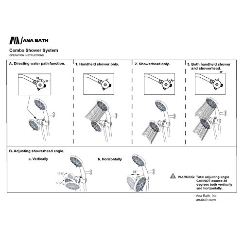 Ana Bath ss5450cbn 5インチ5機能ハンドヘルドシャワーとシャワーヘッドコンボ、システム、つや消しニッケル仕上げ