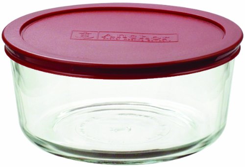 アンカーホッキング7-cupラウンド食品ストレージコンテナwithレッドプラスチックLids、4のセット