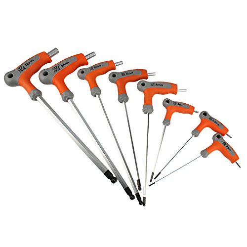 - T型ハンドル仕様の握りやすい形状で、ボールポイント部は片角約25゜まで傾斜させて作業ができますので、手の届きにくい狭い場所で威力を発揮します。