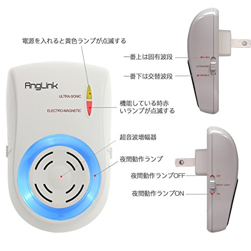 - 【注意事項】超音波の特徴は貫通性が弱いから、Anglink超音波害虫駆除機の近くに障害物を置かないでください。このネズミ害虫駆除機を低め位置に置いた方がいいです。そのため、通電の状態で超音波防護の網が形成されていますので、最大限にネズミや害虫を駆除できます。