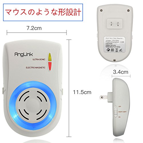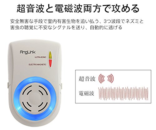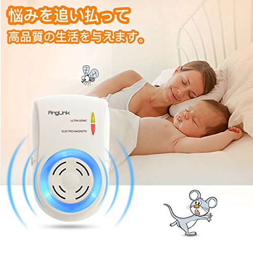 - 【先進技術】Anglinkネズミ撃退器は超音波に基づいて、電磁波の機能も増加され、蚊などの体積が小さめ昆虫により良い駆除効果があります。電磁波はエネルギーが低いですので、人間に100%安全です。家族の年寄りやお子様に影響を及ばしません!ご安心御使用頂けます。
