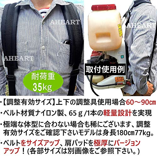 - お客様の声を参考にした長さとパッドの大きさ(デラックス仕様)を改良品した商品です。噴霧機、 散布機などの背負式機械に取り付けて使用する汎用のショルダーベルトです。