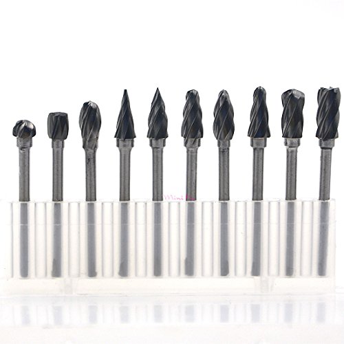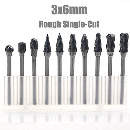 Angelakerry ロータリーファイル(3x6mm) ダイヤモンドバリ タングステンカーバイド 切削ファイル 超硬 ラフシングルカットファイル 10点セット [並行輸入品]