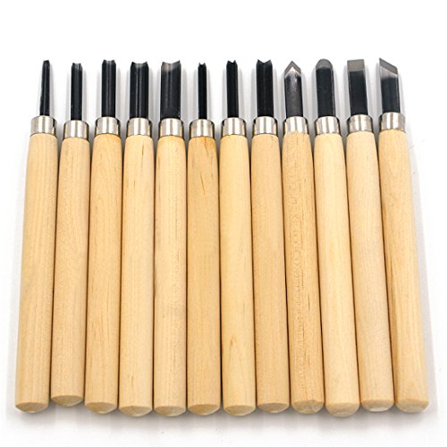 Angelakerry 彫刻刀12本セット(ケースなし) 彫刻刀 セット カービングナイフ 木工 木彫り 木像 木槌 金槌 荒削り 彫刻 [並行輸入品]