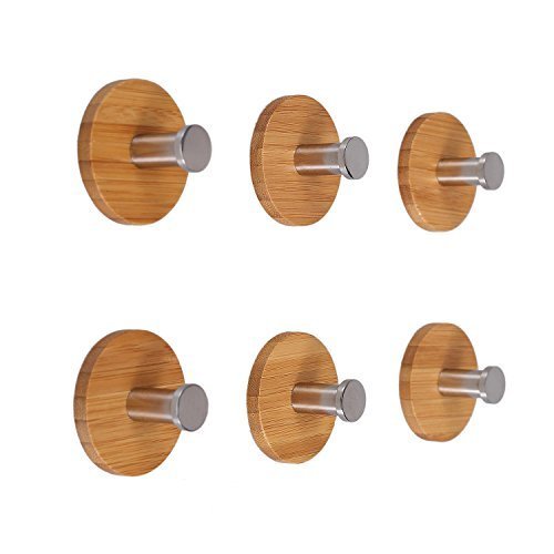 Angelbubbles粘着フック6個/パック3 Mステッカー+フル304ステンレススチール+ Heavy Duty竹 Round A-HOOK03