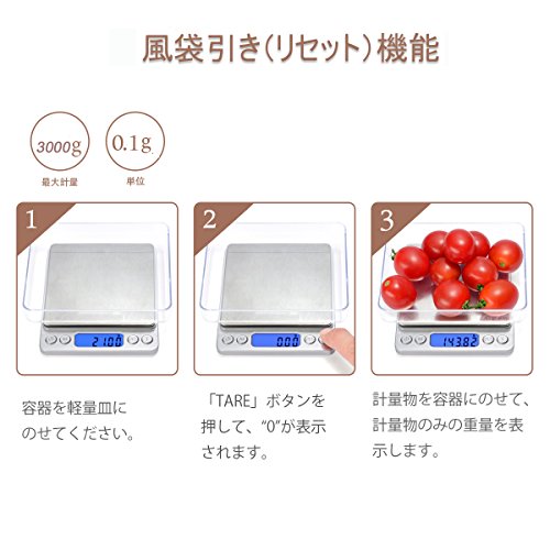 - 0.1g単位で3000gまで計量可能なデジタルスケール!