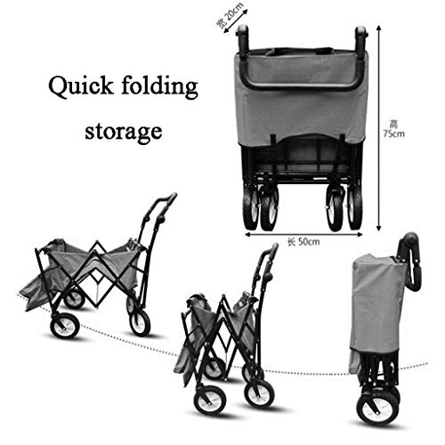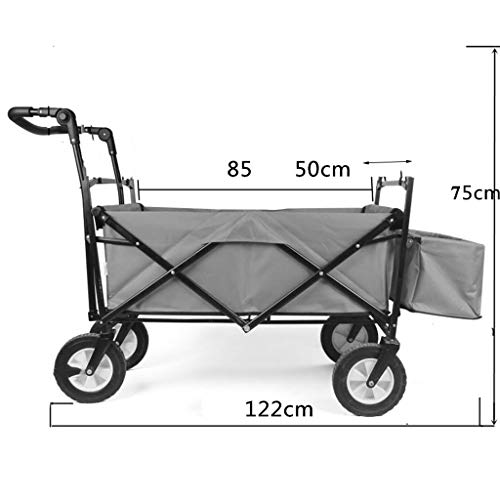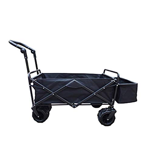 屋外ガーデントロリー、折りたたみ、便利な旅行キャンプ頑丈な休日プッシュプル車、テールポケット延長、大容量負荷80キロの4輪オフロードホイール回転トロリー (色 : 黒)