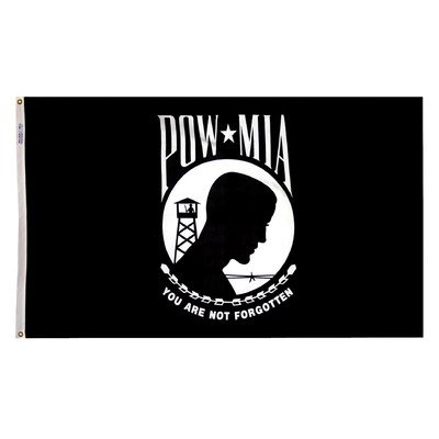 Nylon-Glo - Single reverse Nylon-Glo Nylon POW/MIA flag. Made of 100% SolarMax Nylon for outdoor use. Featuring white polyester duck heading and brass grommets. Strong and durable, special parachute cloth treatment reduces sun and chemical deterioration. The POW/MIA flag was designed in 1971 by the National League of Families. It is now the second most popular flag sold after the U.S. Flag.