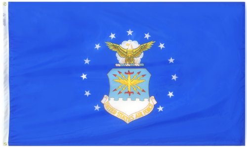 Nylon-Glo - U.S. Air Force - Nylon-Glo Nylon armed forces flag. Made of 100% SolarMax Nylon for outdoor use. Featuring white polyester duck heading and brass grommets. Strong and durable, special parachute cloth treatment reduces sun and chemical deterioration. Official military designs, shows your support for our service men and women.