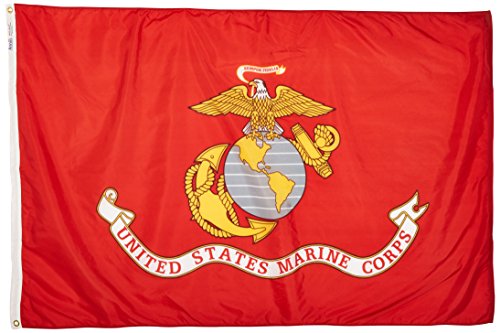Nylon-Glo - U.S. Marine Corp - Nylon-Glo Nylon armed forces flag. Made of 100% SolarMax Nylon for outdoor use. Featuring white polyester duck heading and brass grommets. Strong and durable, special parachute cloth treatment reduces sun and chemical deterioration. Official military designs, shows your support for our service men and women.