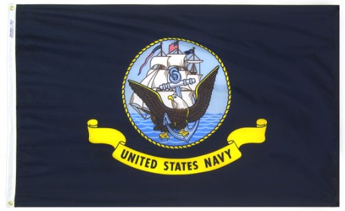 Nylon-Glo - U.S. Navy - Nylon-Glo Nylon armed forces flag. Made of 100% SolarMax Nylon for outdoor use. Featuring white polyester duck heading and brass grommets. Strong and durable, special parachute cloth treatment reduces sun and chemical deterioration. Official military designs, shows your support for our service men and women.