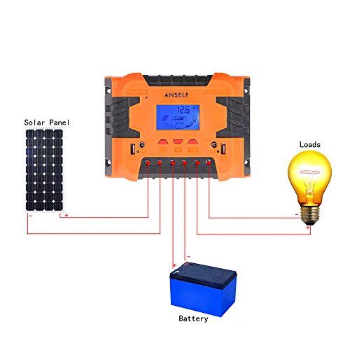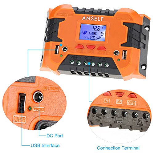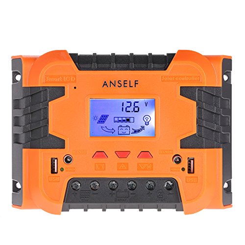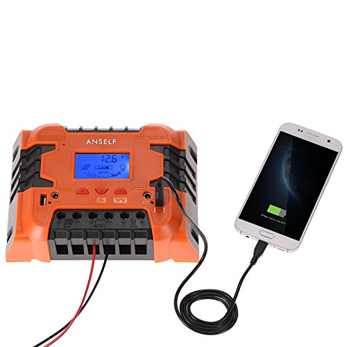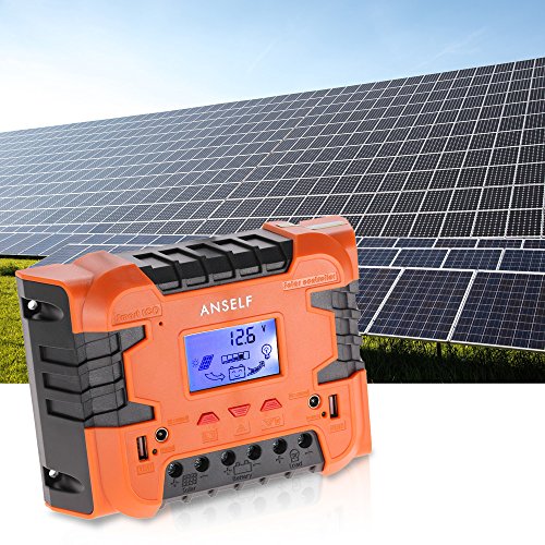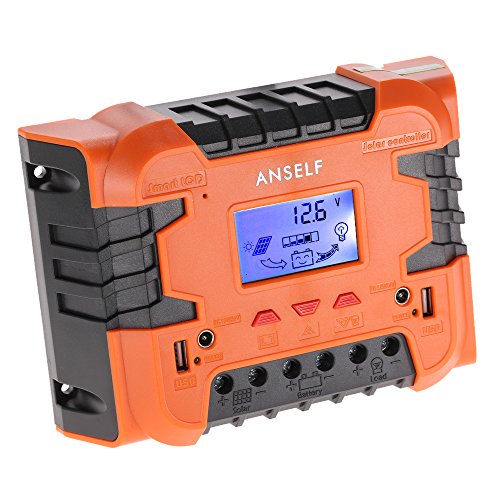 Anself 50A/60A 12V 24V LCD ソーラー充電コントローラ パネルバッテリーレギュレータ 自動過負荷保護 温度補償 デュアルUSB&DCスイッチ