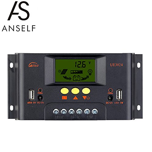 Anself 10A12V/24V ソーラーパネル用 チャージコントローラー オートレギュレータ バッテリーシステム 過充電 保護 LCDディスプレイ (30A)