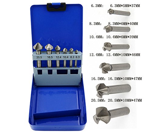 6ピース90 度 3フルート HSS面取りカッタードリル 皿穴ドリル ビット セット