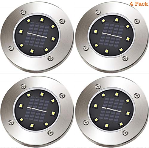 (4パック)ソーラー8 LED地上灯、ガーデン屋外中庭イングラウンドライト(暖かい白)