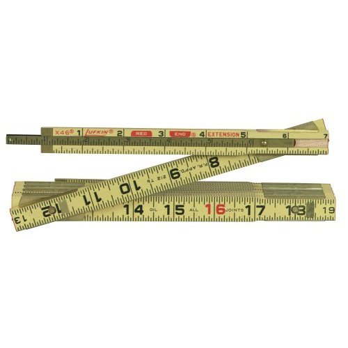 Package Quantity:1 Product Description Lufkin 6' Red End Extension Wood Rule. With its graduated slide rule it can extend up to 6''. The slide rule runs under friction in T-slot and stops at each end to prevent slide from falling out. The wood rule is marked on both the sides and edges. The rule is graduated to 1/16ths of an inch with 16'' stud centers in red and regular outside markings. Amazon.com The Lufkin Red-End 6-Inch Folding Wood Rule features bold red and black markings with a sharp contrast for easy reading. The wood rule features a graduated slide that can extend up to 6-feet. Graduated to 1/16ths of an inch, the rule is marked on both sides and both edges for added convenience, and comes with a clear, abrasive-resistant coating that protects the gradation markings. The rule is backed by a 1-year limited warranty. See all Product Description