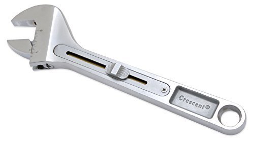 8-inch Rapid Slide adjustable wrench with a 1-inch jaw capacity, Slide button mechanism in handle for quick, fast adjustment, Forged steel construction with a chrome finish and polished head; wide handle for increased leverage, SAE/metric size indicator on jaw; debris shield protects slide mechanism, Weighs 1.05 pound