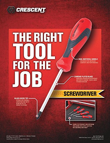 The Crescent dual material grip Phillips screwdriver has a 1-1/4-Inch shaft and a No.2 black oxide Phillips bit.