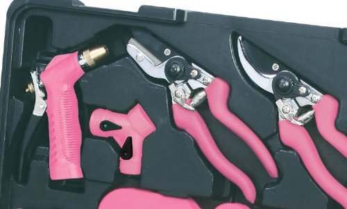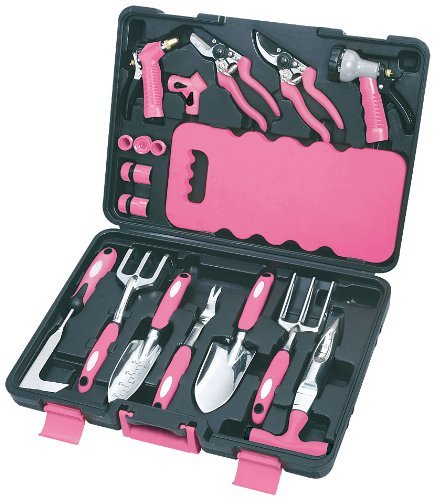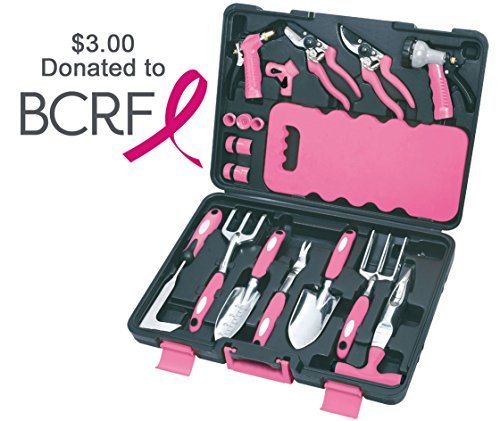 The Pink 18-Piece Garden Tool Kit from Apollo Precision Tools contains useful tools for all your gardening needs like pruning shears, soft grip hose nozzles, quick hose connects and water splitter/controller. The knee pad is convenient and comfortable for weeding and planting. Tools are contained in a sturdy blow molded carrying case. The tool kit includes: 8.5" pruning shears, 8.5" anvil pruning shears, knee pad, trowel, narrow trowel, rake, pitch fork, weeder, bulb planter, edging knife, 6 function hose nozzle, adjustable metal hose nozzle, "Y" hose coupler with swivel, 1/2" hose connector, 1/2" waterstop hose connector, three 3/4" tap adaptors. Plus, 3 dollars from each purchase is used to help fund breast cancer awareness initiatives. The Breast Cancer Research Foundation is dedicated to preventing breast cancer and finding a cure in our lifetime by funding clinical and translational research worldwide.