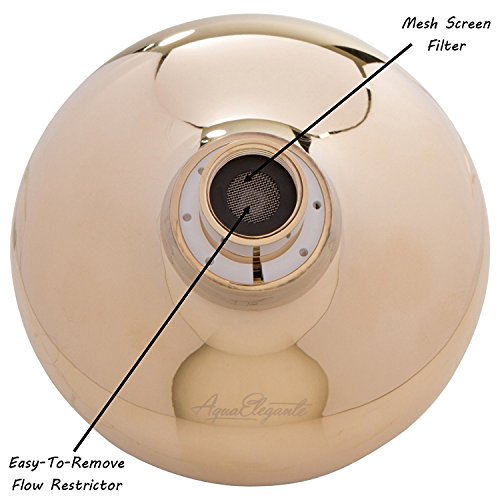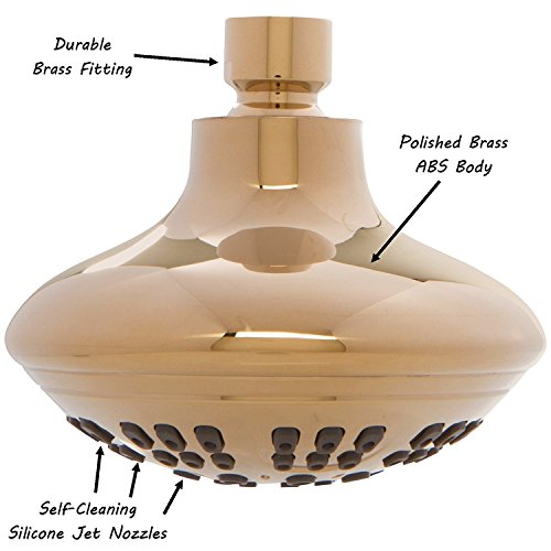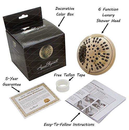 Aqua Elegante 6機能 高級シャワーヘッド – ベストな高圧力 壁マウント 調節可能なヘッド 4" Face | 1/2" Threaded Female Connection Luxury Shower Head - Polished Brass