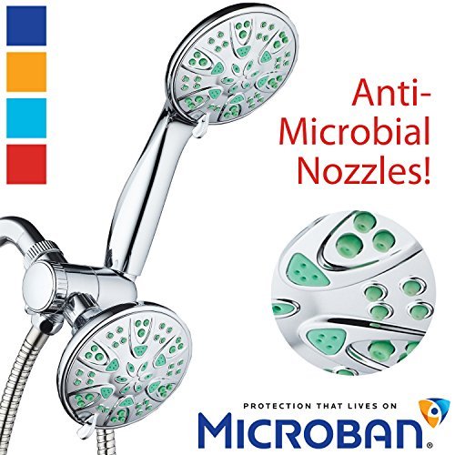 - 抗菌/抗つまりノズルで、詰まりを減らし、より強い水圧を。通常のシャワーヘッドは、ジェットの通り道の詰まりが水の流れを制限し、水圧が低くなることがよくあります。当社のシャワーノズルは、カビやバクテリアの成長を妨げる革新的Microban® 抗菌技術を用いて作られています。柔軟性のあるゴムデザインにより、カルシウムやミネラルの堆積を擦るだけで簡単にきれいに取ります。それによりシャワーヘッドは清潔で詰まらず、優れた機能を発揮できます。