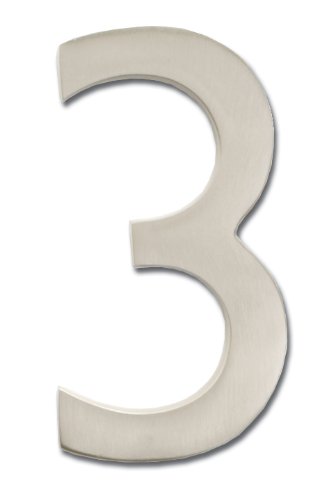 Architectural Mailboxes 3582SN-3 Solid Cast Brass 4 inch Floating House Number Satin Nickel "3"