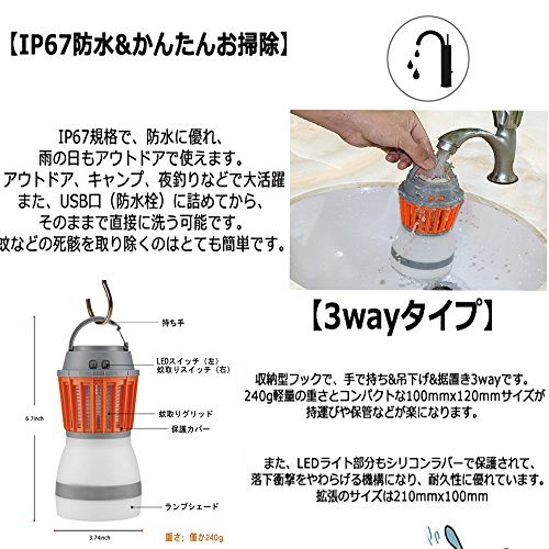 - ■【ブラシ付き、IPX7防水規格】IPX7防水規格で、アウトドアで突然な大雨に濡れても問題なく使い続ける。しかも、USB口に詰めて、そのままで残った蚊を直接に丸洗いできて、大変便利です。それも、ブラシ付き、虫の死骸は簡単に掃除できます。