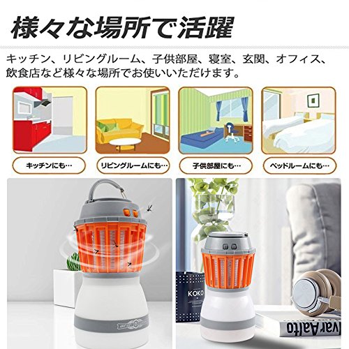 - ■【2200mAhバッテリー】2200mAhバッテリーの容量が大きいため、使用時間が長く、最高の18時間となる。充電ポットの上部にLEDライトで充電状態を示っています。ご注意:初めて使用する前に、まずバッテリーを満タンにして下さい。そして、蚊取りライトが点灯していないで、LEDランタンはまた使用できます。LEDランタン照明と電撃殺虫を同時利用することができで、蚊取り器に充電してください。