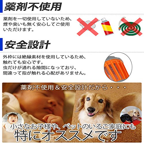 - ■【薬剤不要、安全安心】蚊取り線香より、物理的な方法で毒素、煙、騒音など全然なく、スプレーの飛び散りも無く、殺虫剤特有のニオイなども全くない。妊婦やお子様やペットがいる家庭でも安心してご使用いただけます。台所・居間・玄関先・応接間・ベランダ(軒下)屋外などに最適です。