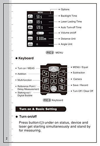0.05〜120mの広い測定範囲、高精度測定+/- 2mm、メートル、インチ、フィートのマルチユニット選択;デジタルレベル、大型TFT LCDディスプレイ、デジタルレベル、USB接続。