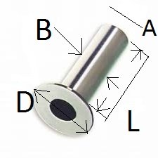 - A (内径= 0.21」を参照してください。B (外径) = 0.275です。L = 0.78インチ(3 / 4インチ)は付属していません。D = 1.27 cm ( 0.5インチ( 1 / 2 " )