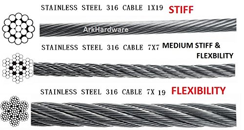 - arkhardware 1 / 8 ", 1 x 19ステンレススチールt316剛性が高くワイヤーロープ商用マリーングレードケーブル