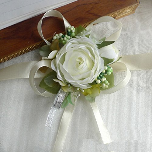 - 2枚セットで手首の花の、かわいいカメリア、リボン、手首のネクタイにすべての人の手首が入ります!ウェディングリングに対応の左手£¬にも手に身に着ける。