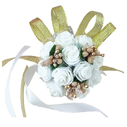 Arlai 3個ブライド手首コサージュウェディング装飾花人工ダンス手花 diameter 2.75 inch bfm064-white