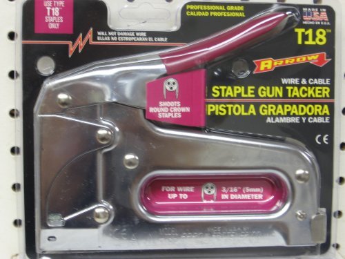 - Arrow T18 staple gun uses 3/8-inch to 7/16-inch long, 3/16-inch round crown staples. Used For low voltage wire up to 3/16-inch diameter