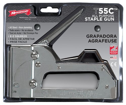 Chromed steel housing. Made in the USA. The Arrow Fastener T55C is a powerful and dependable all-purpose staple gun with a value conscious design. Ideal for DIY and occasional use, it features an all chromed steel housing, jam-resistant design, and a powerful coil spring mechanism. A molded resin handle stop and metal handle lock, a classic rear-load magazine, and a staple viewing window add extra value to this convenient, easy to use tool. Uses 1/4-inch 504 (2750-0719), 5/16-inch 505 (2750-0735), 3/8-inch 506 (2750-0750), 1/2-inch 508 (2750-0776), 9/16-inch 509 (2750-0792), and 17/32-inch 50CT Ceiltile (2750-0818) staples. Proudly made in the USA.