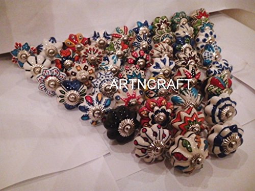 artncraftカラフルミックスAssorted 20ノブハンドペイントセラミックドアノブキャビネット引き出しプルドレッサーハンドル