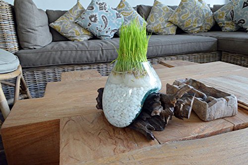 ぽってりとした形がかわいいガラスと天然木を組み合わせた絶妙なバランスのオブジェは、まさにアート! ボウルは透明感あるブルーの色合いと小さな気泡が散りばめられた清涼感たっぷりのバリガラス。 光を通せばキラキラと輝き、とても涼しげで爽やかな雰囲気を演出してくれそうです。 また、木の風合いが存分に引き出された流木はインテリアの中でも存在感抜群で、お部屋のおしゃれなアクセントになります。 用途はいろいろ~金魚やメダカ、水草や小石を入れてもおしゃれですし、多肉植物を寄せ植えするのも人気です。 イメージ写真は、稲苗です。 おしゃれなリゾートホテルやスパなどで稲苗が飾られています、バリ島で一番多いスタイルではないでしょうか。 ◆付属品:スノーストーン(小石) ◆サイズ:縦/約12~30cm 横/約12~30cm 高さ/約12~30cm ◆素材:バリガラス 天然木 ◆生産国:インドネシア バリ島 ◆注意事項 ・天然の流木そのものを活かして作られている為、形や大きさがひとつひとつ大きく異なります。ご指定はできませんがご了承ください。 ・ガラス製品の特性上、気泡や黒い点などが混じる場合があります。 ・植物は付属しておりません。