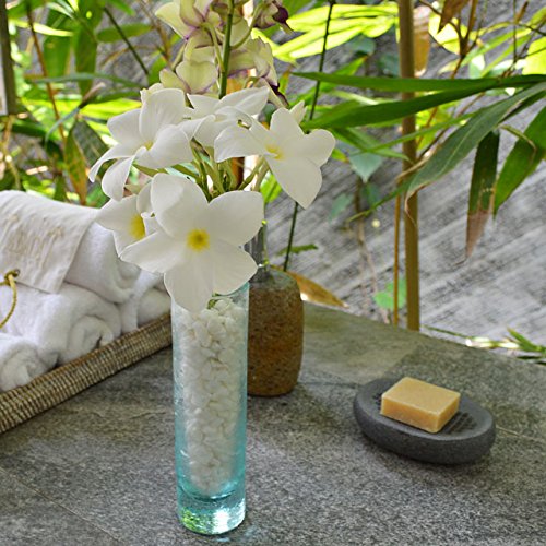 爽やかな淡いブルーが印象的なガラスのフラワーベース(花瓶) シンプルでありながら高級感あるデザインがお部屋を一層引き立ててくれそうです。 また、ガラスから見えるスノーストーンがとても綺麗です! ◆付属品 ・スノーストーン(小石) ◆注意事項 ・ガラス製品の特性上、気泡や黒い点などが混じる場合がございますが、予めご了承ください。 ・お花は付属しておりません。 ◆サイズ:直径/約5cm 高さ/約20cm ◆素材:バリガラス ◆生産国:インドネシア バリ島